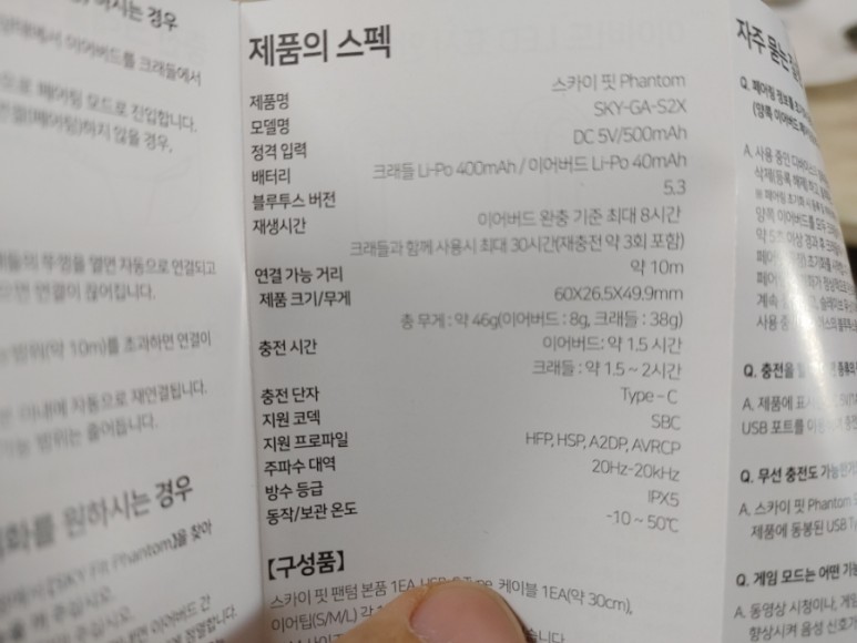 스카이 핏 팬텀 블루투스 게이밍 무선이어폰의 특징