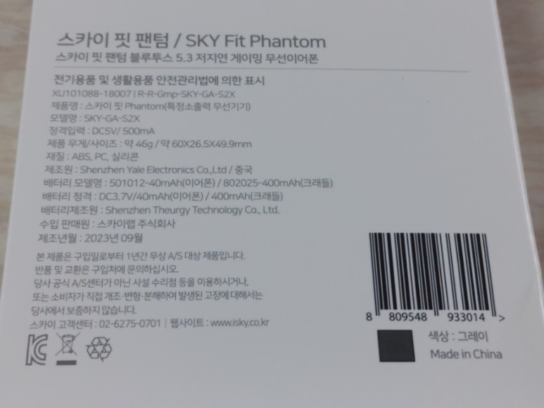 스카이 핏 팬텀 블루투스 게이밍 무선이어폰