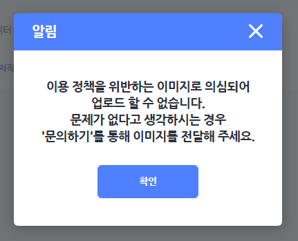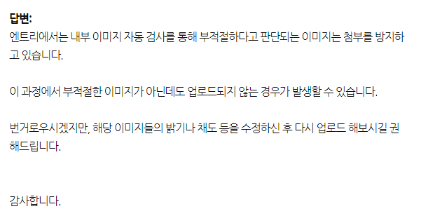 간혹 이미지 업로드 불가한 경우가 있어요.