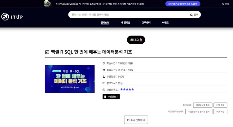 엑셀 R SQL 한번에 배우는 데이터 분석 기초과정을 신청했어요.