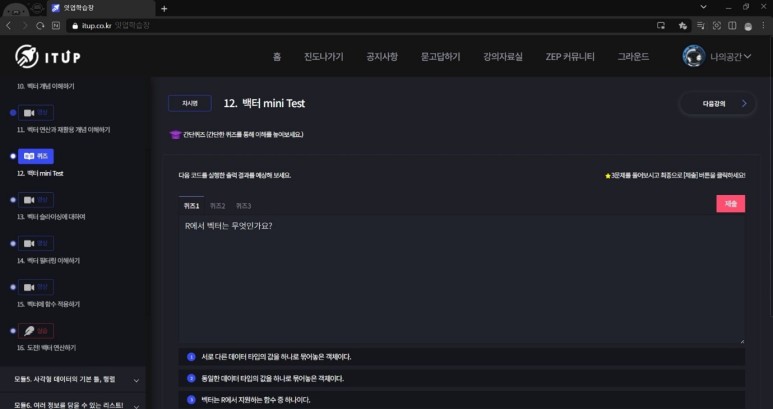 중간 중간에 퀴즈가 있어서