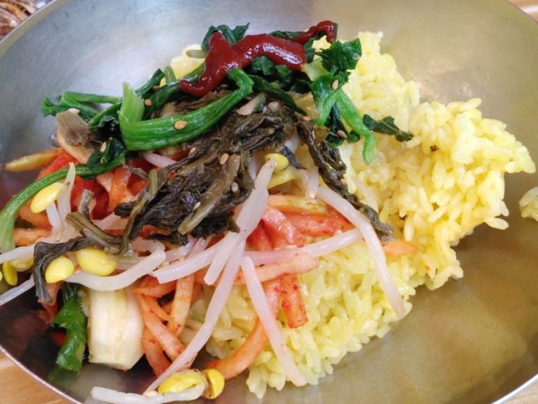 각종 나물을 넣어 비빔밥처럼 비벼먹을 수 있어요.