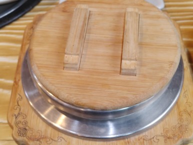 가마솥밥을 비빔밥 그릇에 옮겨담은 후
