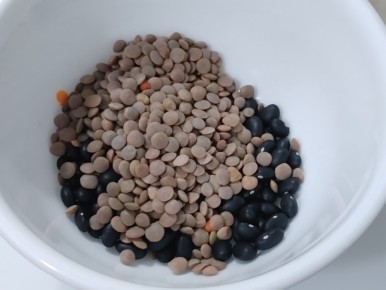 렌틸콩과 검정강낭콩을 반반 섞어봤어요.
