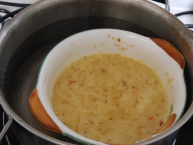 중탕 방식으로 계란찜을 만들고 있어요.