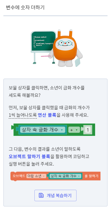 1씩 늘어나도록 연산 블록을 활용해보는 예제에요.