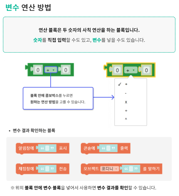 연산 블록에 변수를 활용하면 되구요.