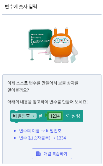 비밀번호라는 변수를 만들고
