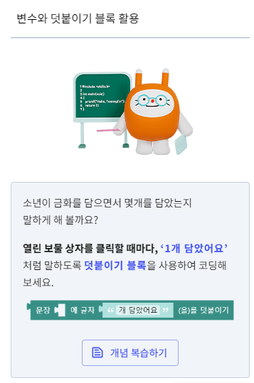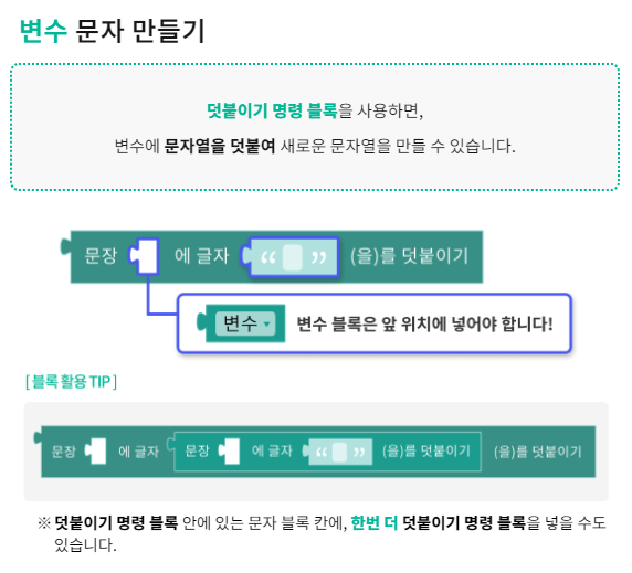 변수에 덧붙이기 블록을 활용하여
