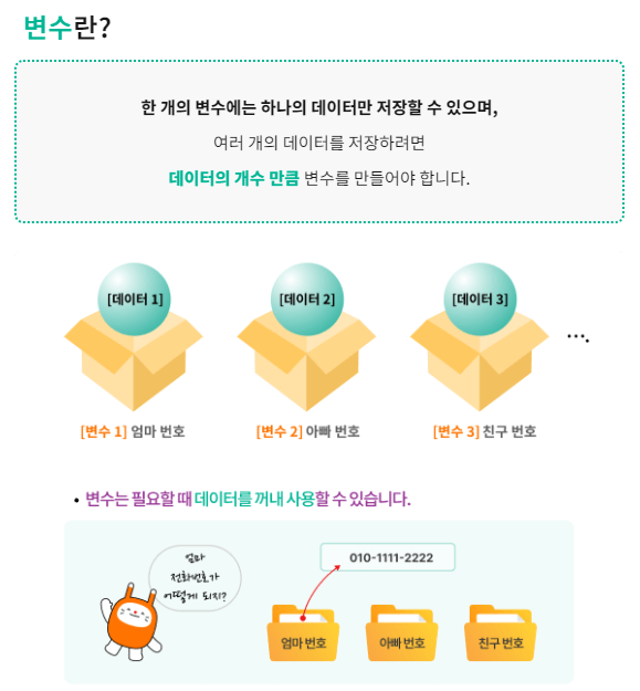 변수에 대해서 AI 튜터와 함께 알아봐요.