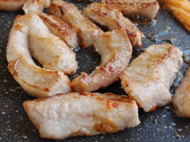 삼겹살의 고기기름으로