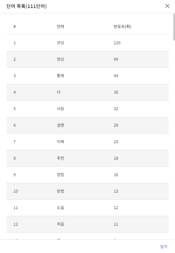실제로 단어의 목록과 갯수를 확인하기 위해서