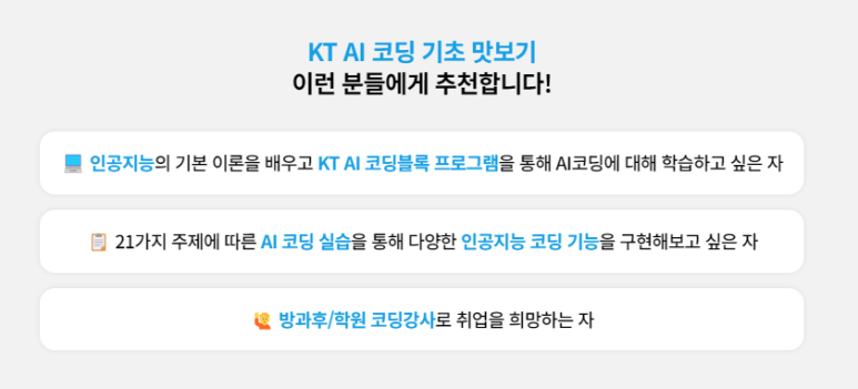 KT AI 코딩 기초 맛보기 수업을 신청하면