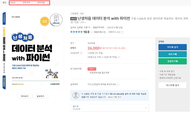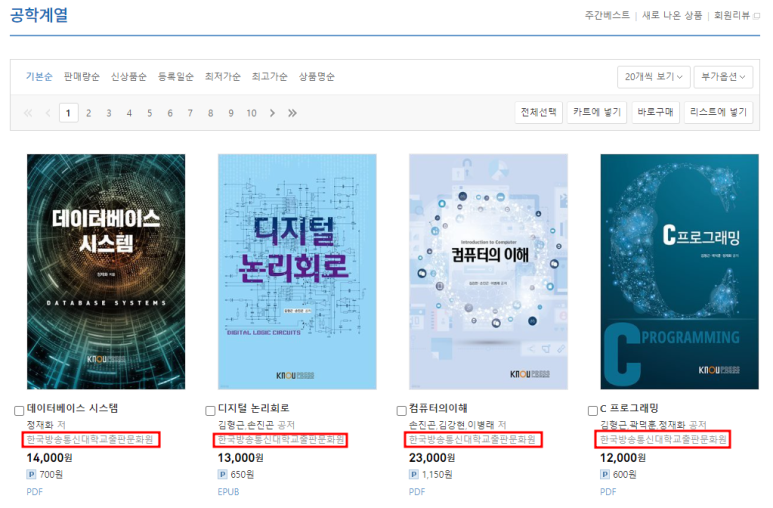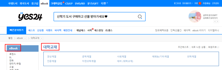 카테고리에 EBOOK -> 대학교재가