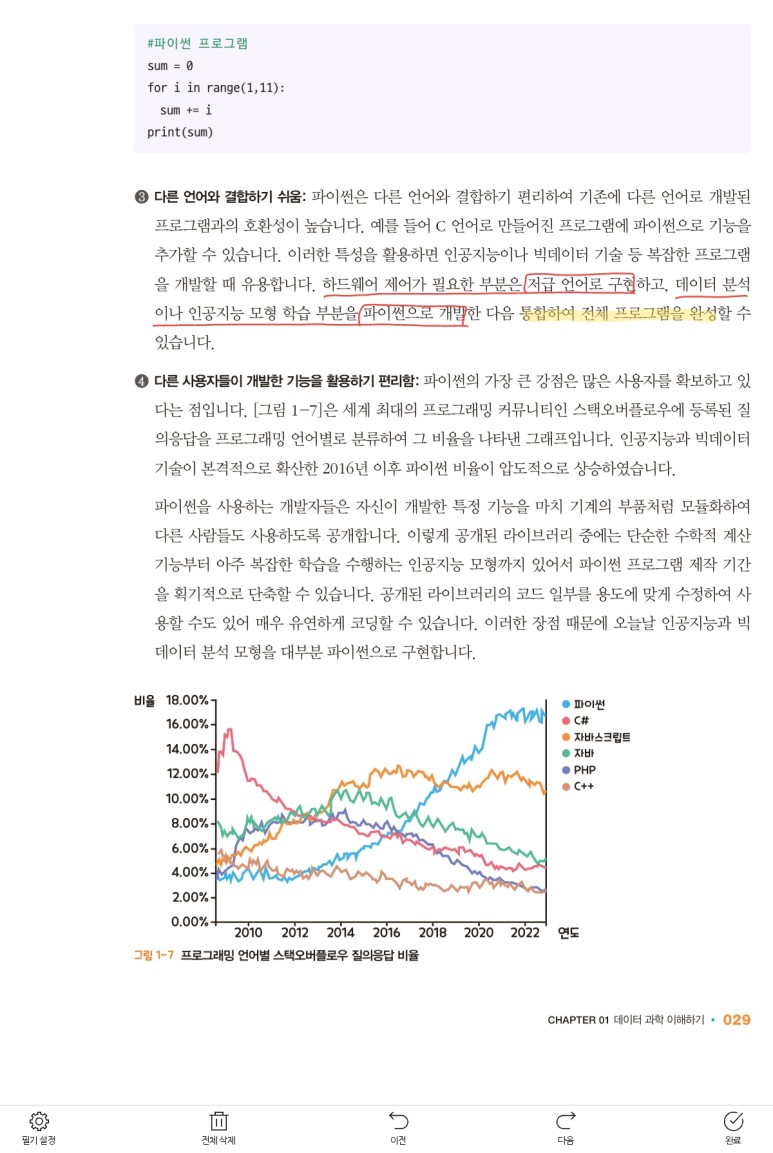 전자책에 펜으로 밑줄 그어가면서 필기까지 가능하거든요.