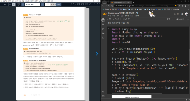 그래서 아래와 같이 한쪽엔 전자책어플 화면 띄워놓고