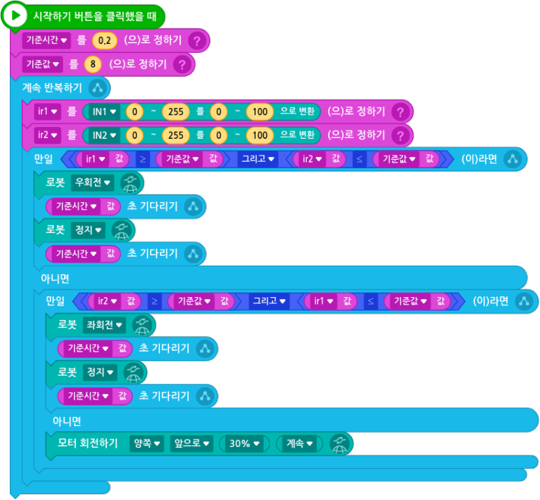 라인트레이서를 만들 수 있어요.
