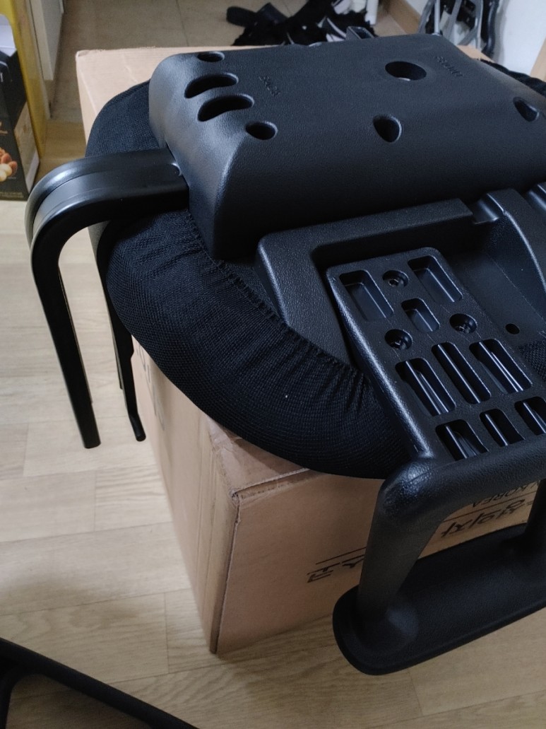박스 위에 올려놓고 팔 받침대부터 조립했어요.