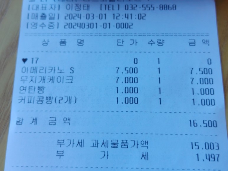 카페라르고빌에서는 네이버영수증