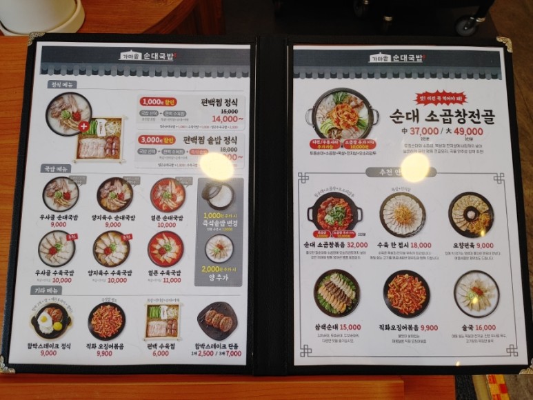 가마솥 순대국밥에서 맛볼 수 있는 메뉴에요.