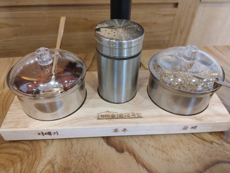 다데기, 후추, 들깨는 테이블마다 올려져있어요.