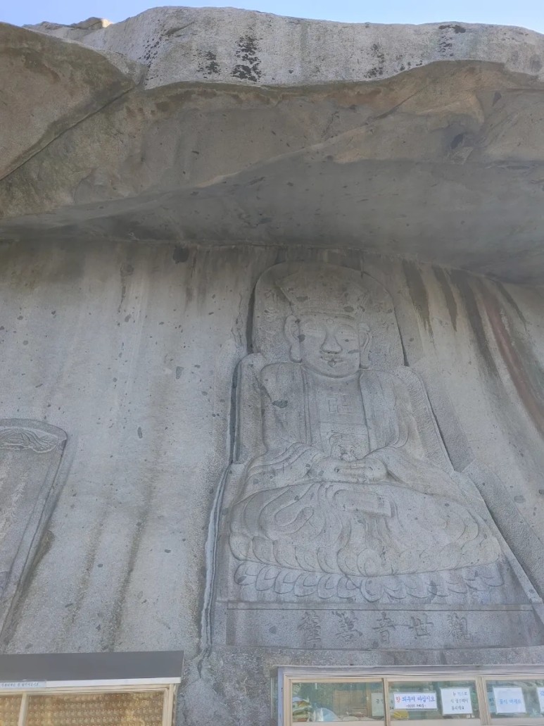 눈썹바위 암벽에 조각한 것으로 유명해요.