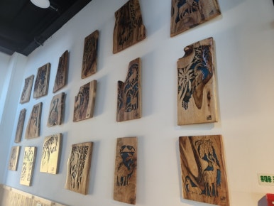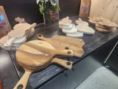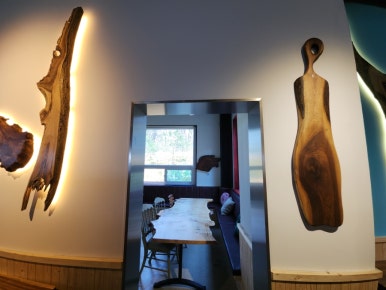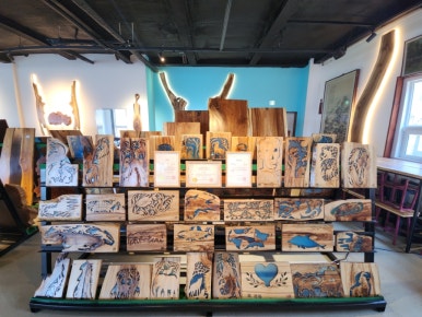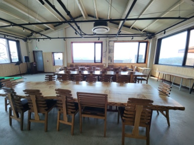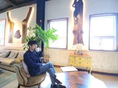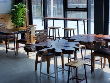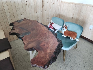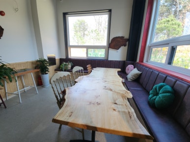 카페에 있는 나무 테이블들이 직접 만든거에요.