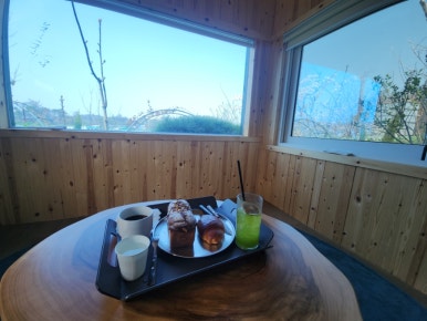 화창한 하늘과 봄의 햇빛을 그대로 맞을 수 있어요.