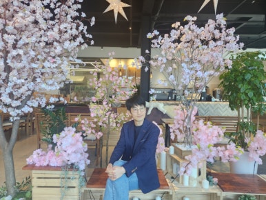 카페 내부에 벚꽃 느낌의 포토존도 있구요.