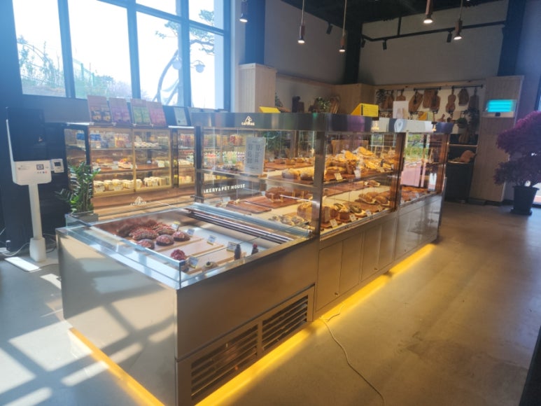 빵 진열된 곳이 외부로부터 차단되어있었어요.