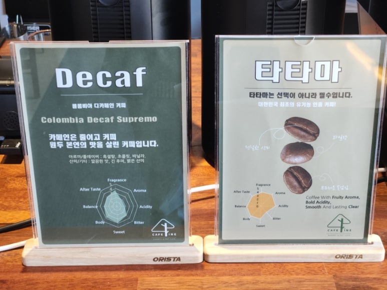 콜롬비아 디카페인 커피도 준비되어있어요.