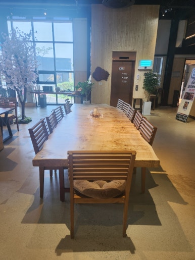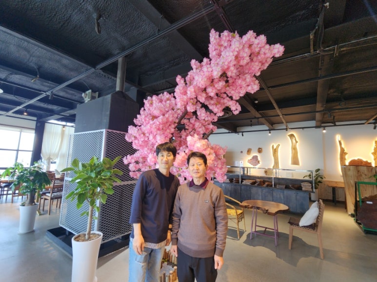 카페에 있는 나무 테이블들이 직접 만든거에요.