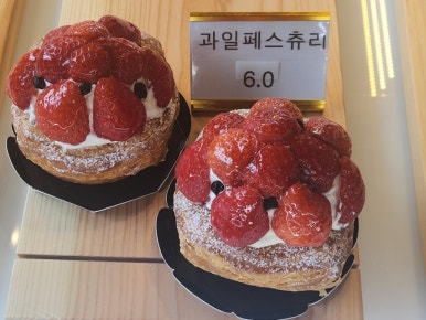 상큼한 딸기가 올라간 베이커리가 너무 예뻐서