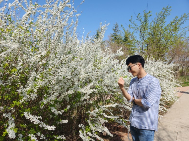 꽃밭에 서있는 남자
