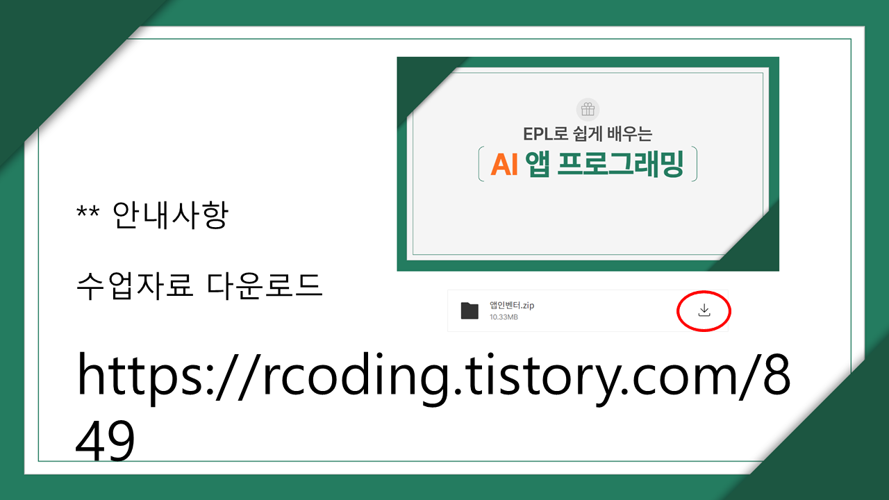 | 앱인벤터 수업자료 다운로드 (0) | 2024.04.18 |