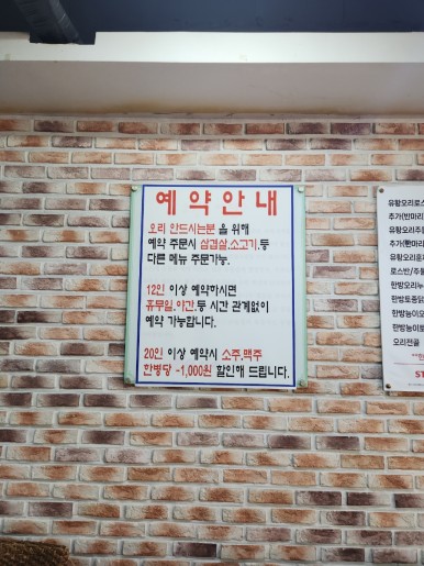 게다가 20인 이상 예약시 소주, 맥주 한병당
