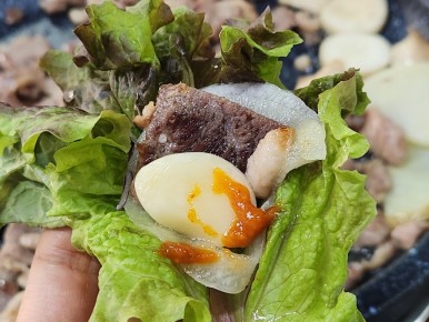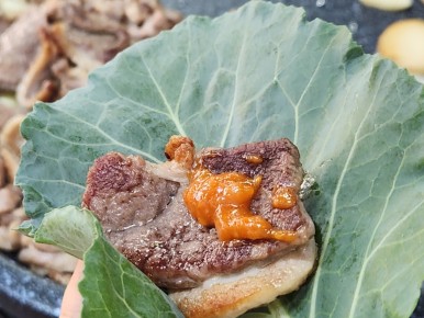 제공해주신 각종 쌈에 올려서 싸먹어봤어요.