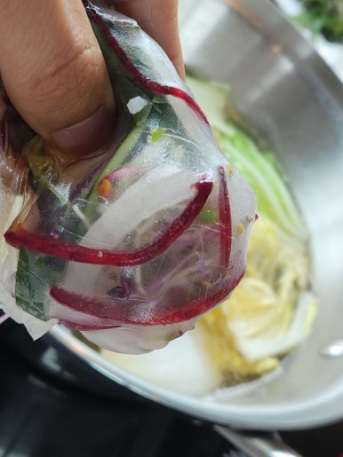 월남쌈에 고기 넣어서 먹어봤어요.