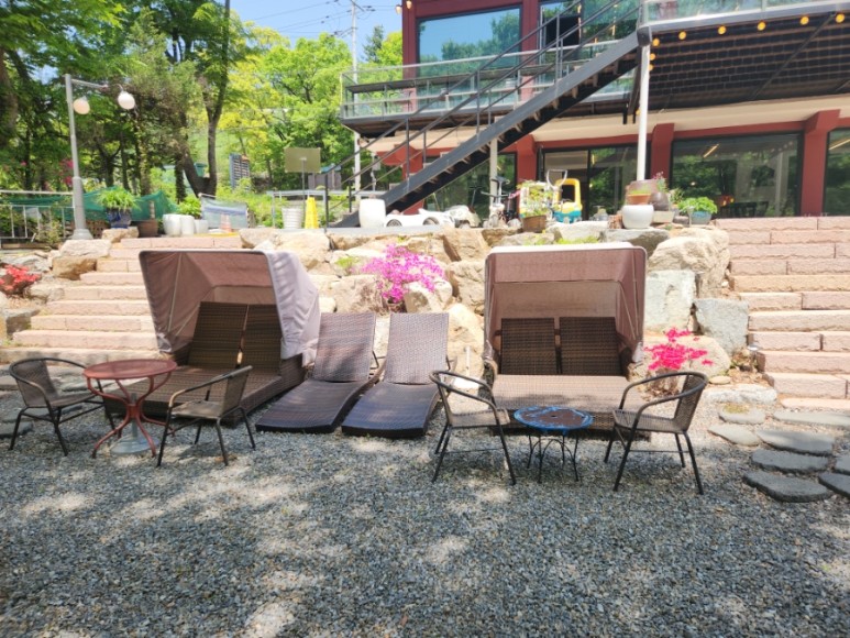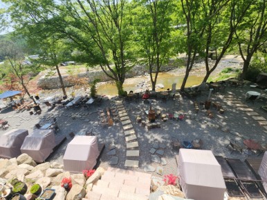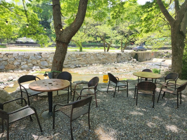 1층 계곡 있는 쪽에 좋은 자리가 많아요.