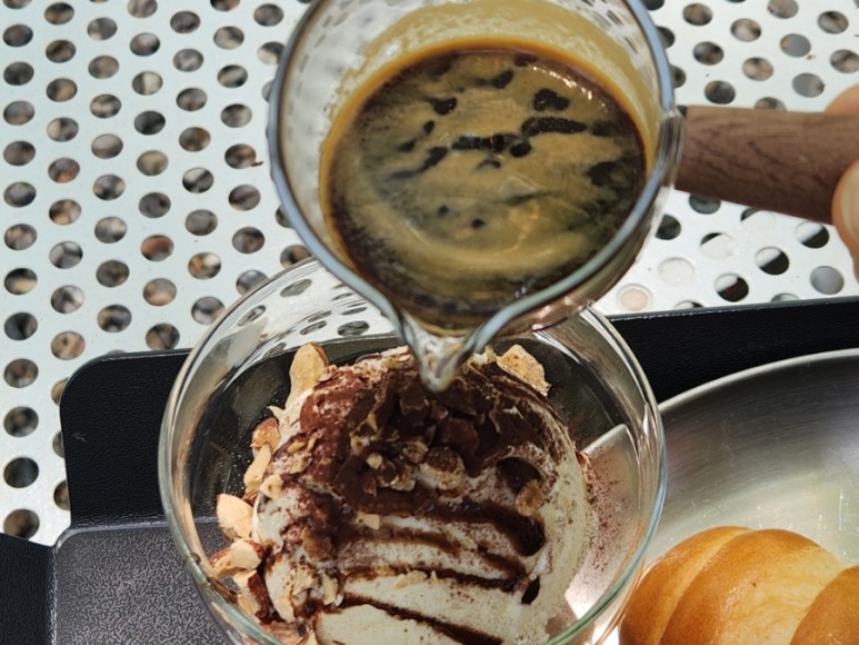 아이스크림 위에 진한 에스프레소를 올려서 먹는데