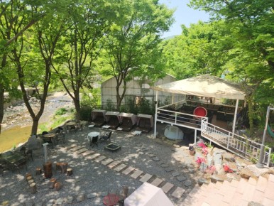 1층 계곡 있는 쪽에 좋은 자리가 많아요.