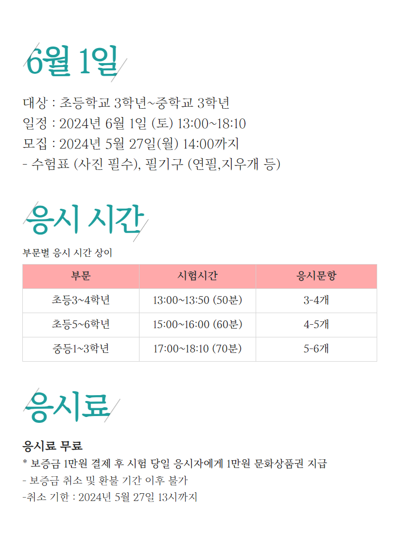 ㅇ 응시대상 : 초등학교 3~4학년,