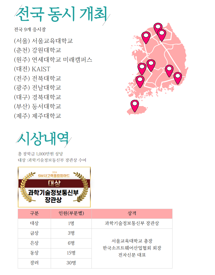 ㅇ 시상내역 : 총 장학금 1,000만원 상당, 과학기술정보통신부 장관상(대상)