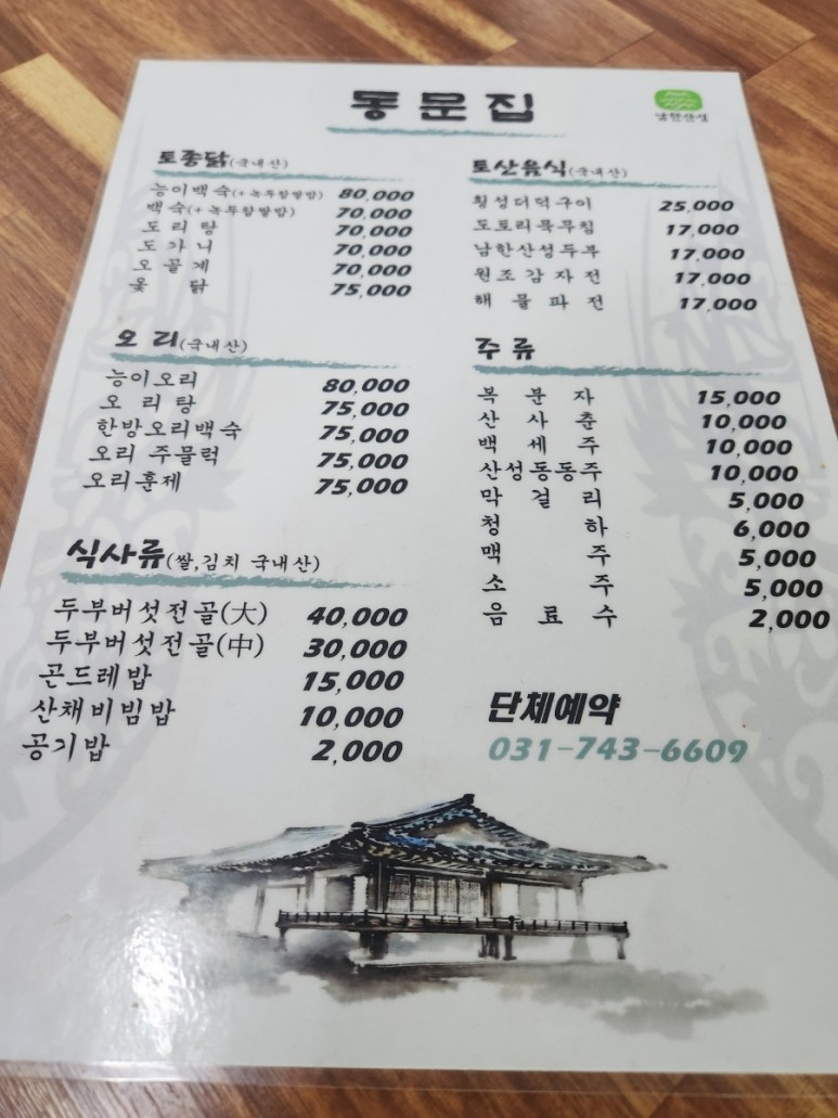 남한산성 식당에 주차하고