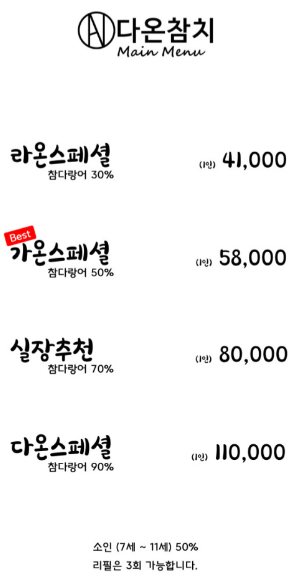 오산참치맛집 다온참치는 참치회 무한리필은 아니에요.