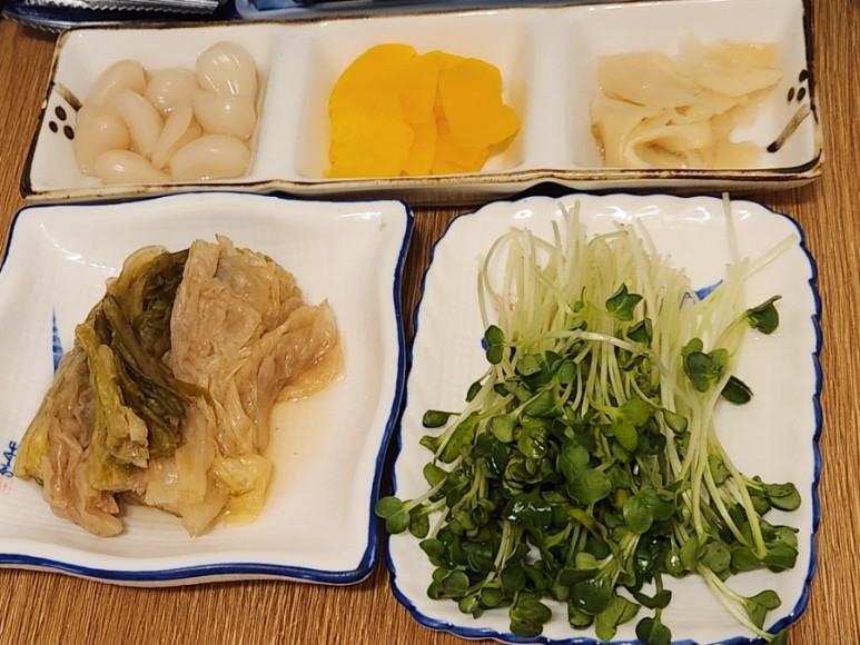 백김치, 무순, 락교, 단무지, 초생강이