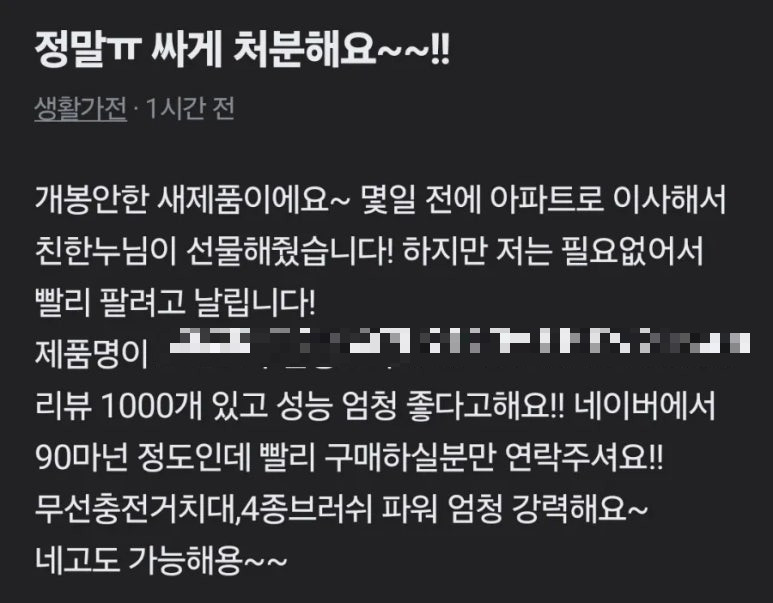 아주 저렴하게 팔겠다며