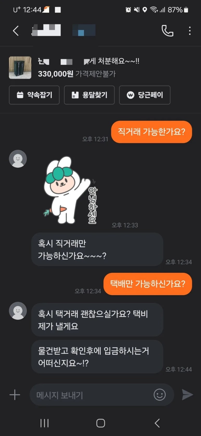 일단 직거래 하자고 말을 걸어보세요.