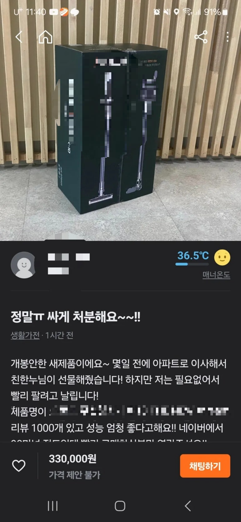 바로 고가의 새 제품의 청소기를