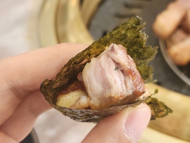 삼겹살을 김에 싸먹는 것도 처음이었어요.